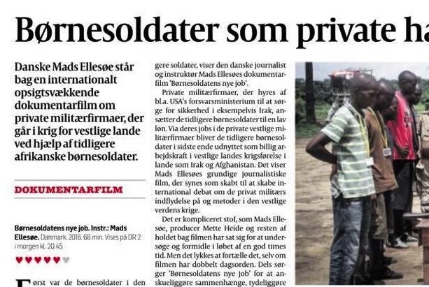 “Mads Ellesøes grundige journalistiske film synes som skabt til at skabe international debat om de privat militærs indflydelse på den vestlige verdens krige.